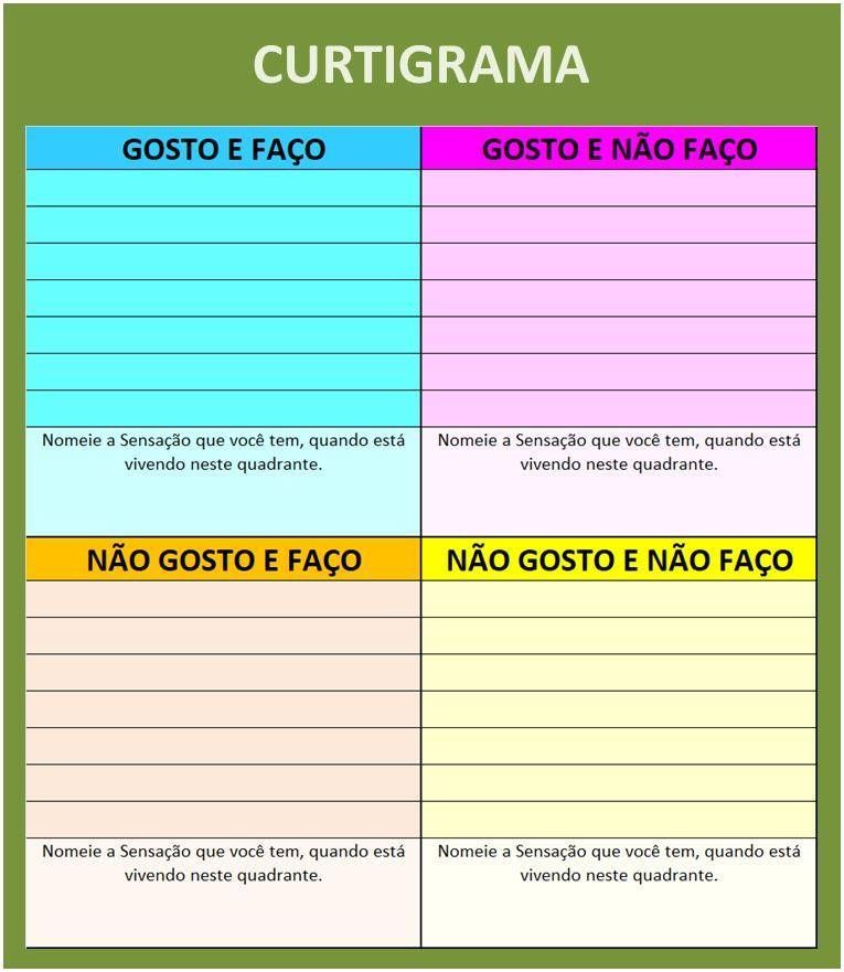 O Curtigrama é uma ferramenta que nos ajuda a avaliar a maneira como aproveitamos o tempo. Ideias inspiradoras e promissoras emergem deste processo.