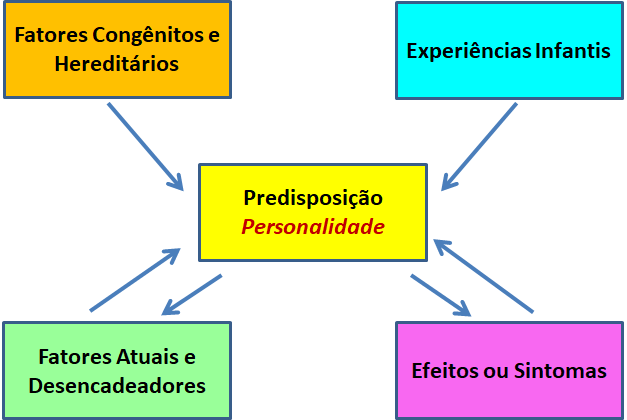 Tratamos o tema a partir da Teoria da Causalidade e da ideia das Séries Complementares (Teoria da Causalidade de Freud). A psicanálise aponta os principais fatores formadores da nossa personalidade, e Freud denomina a maneira com que agimos no mundo de Predisposição.