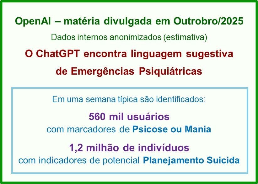 Em outubro de 2025, em um cenário de crescente pressão pública, a OpenAI divulgou dados internos anonimizados estimando a frequência com que o ChatGPT encontra linguagem sugestiva de emergências psiquiátricas.