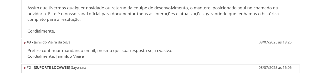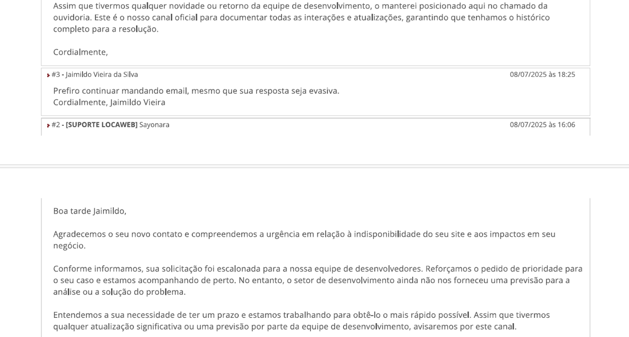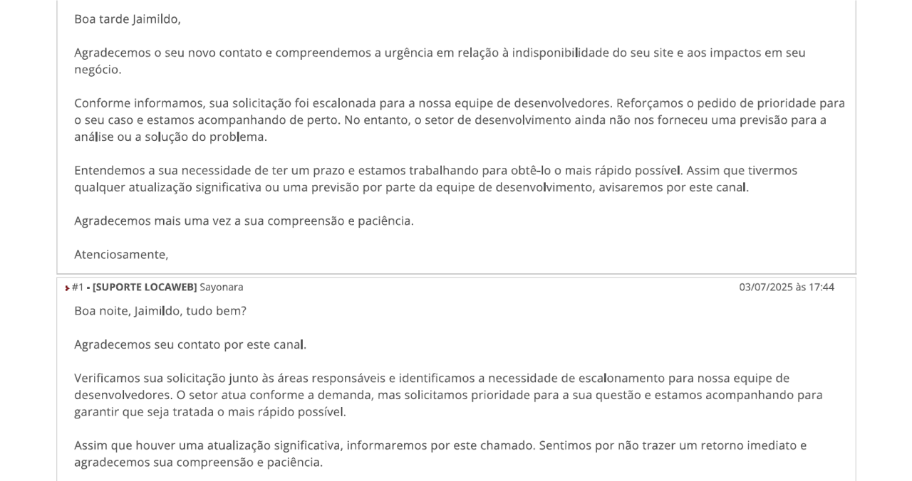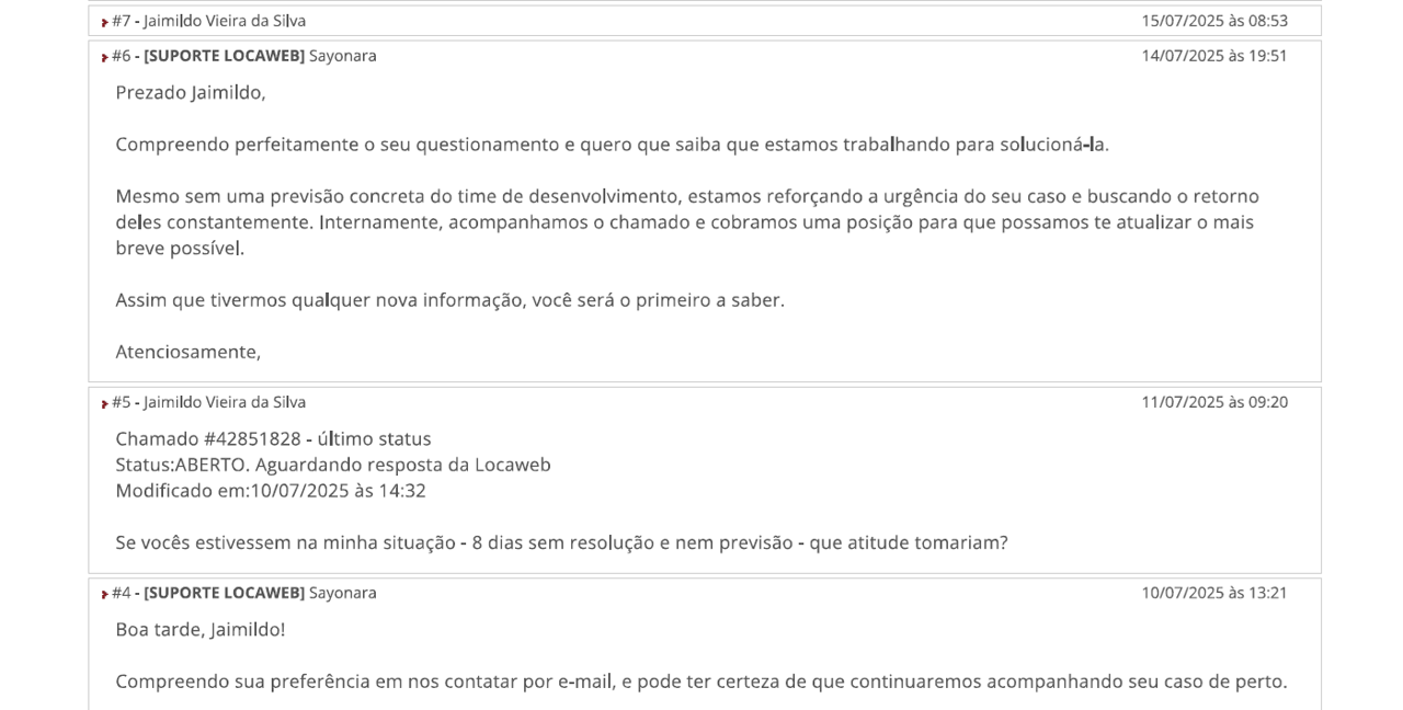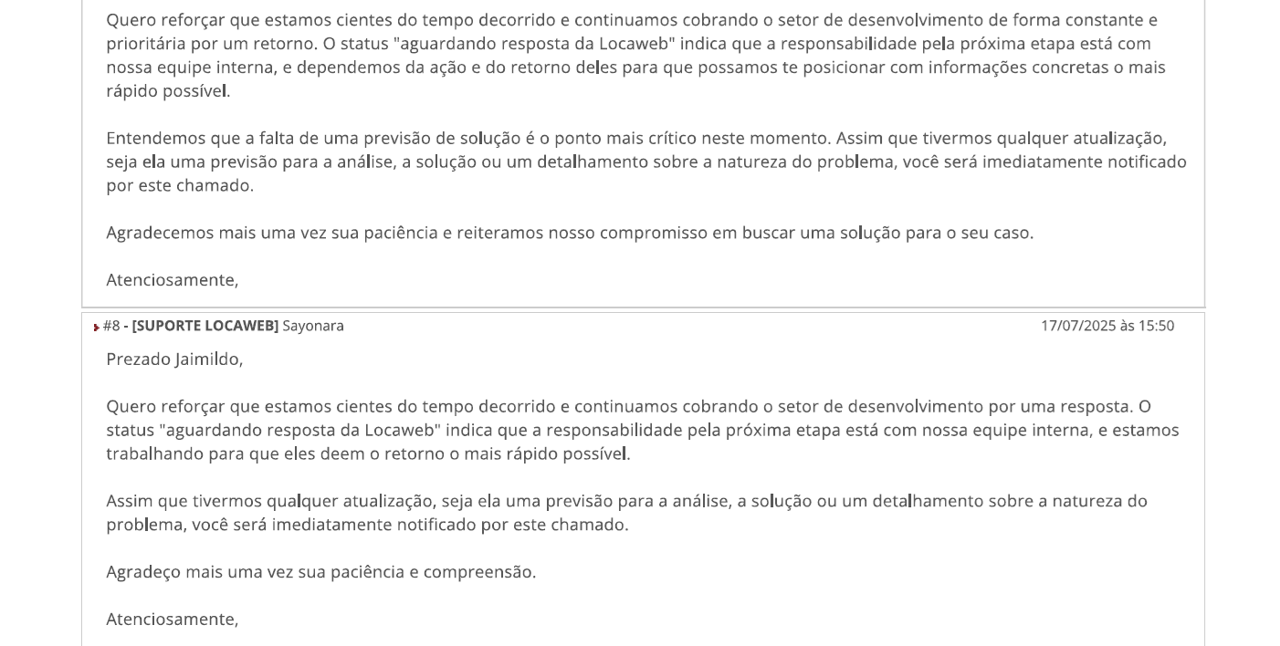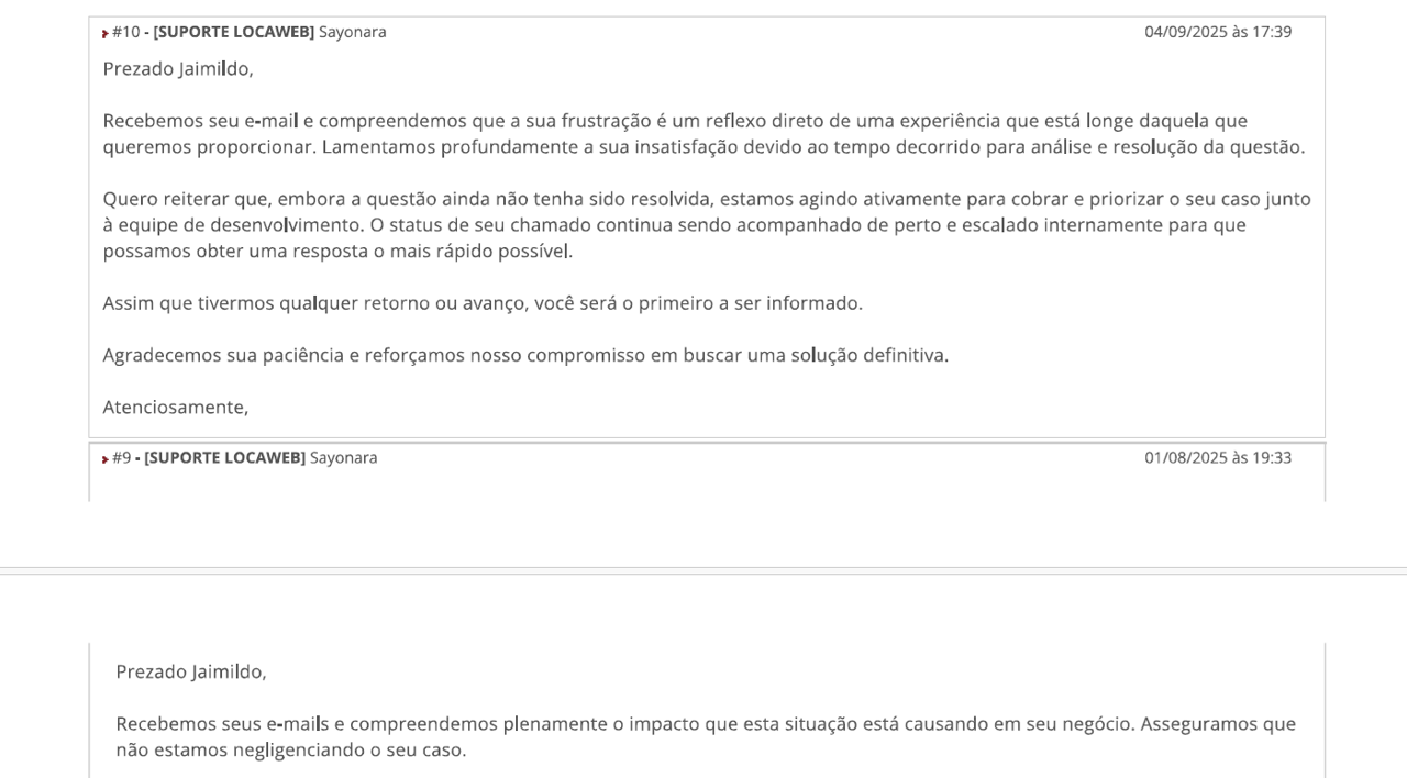 Status do problema em 10/11/25 - problema sem solução desde 2/7/25
