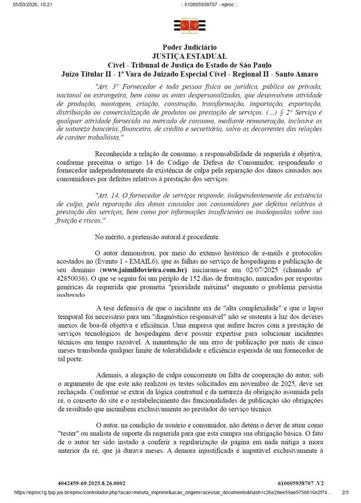Problema na Hospedagem do site www.jaimildovieira.com.br