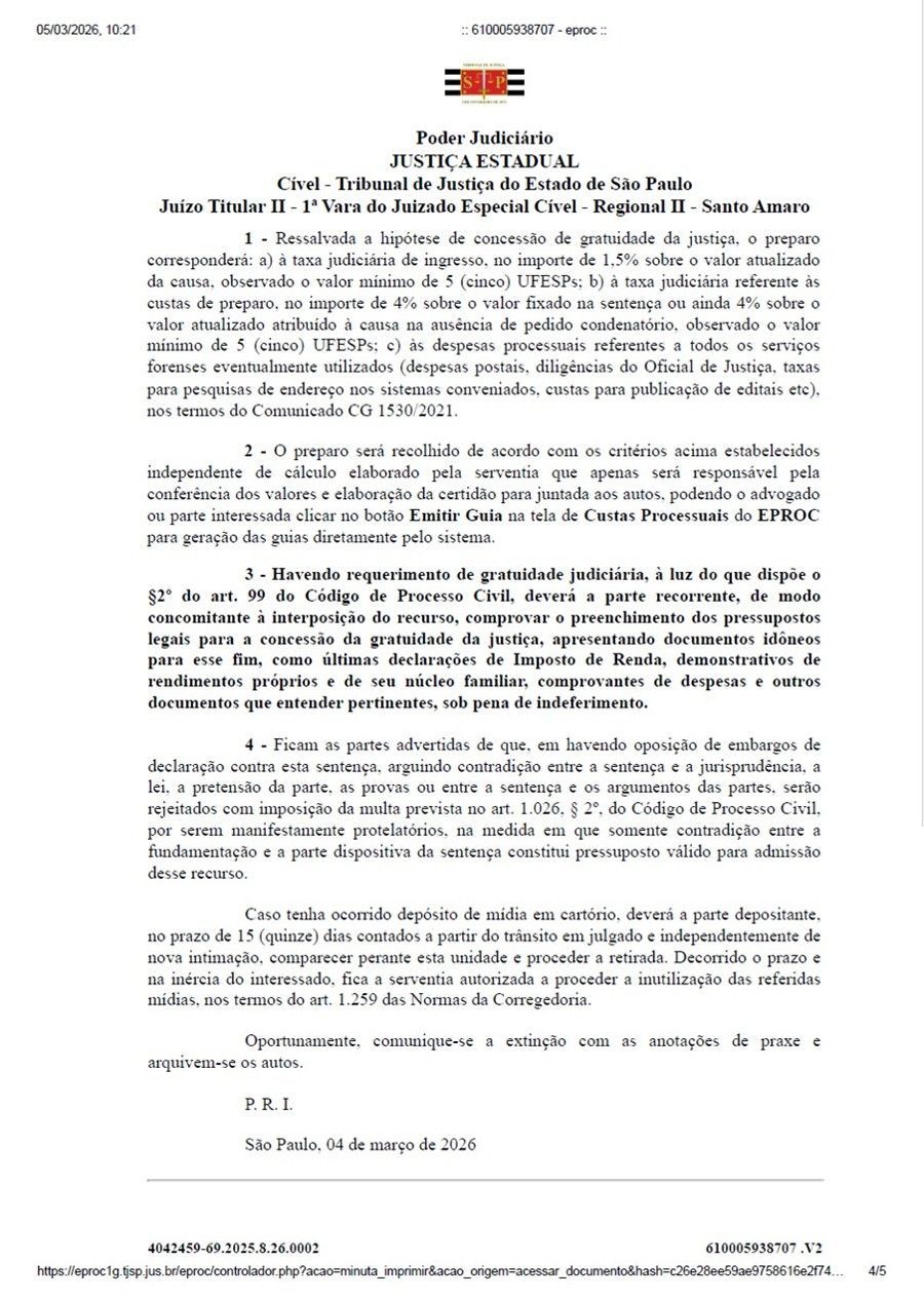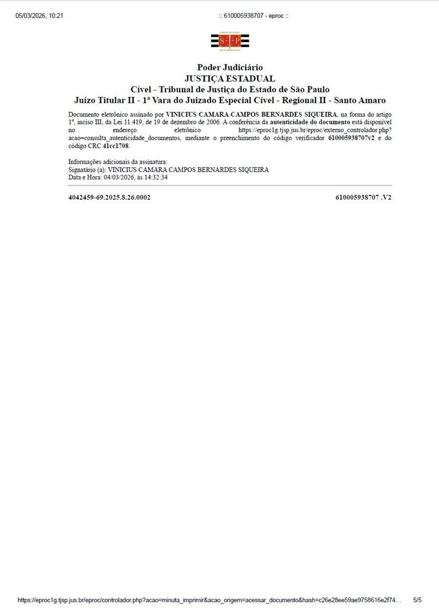 PROCEDIMENTO DO JUIZADO ESPECIAL CÍVEL Nº 4042459-69.2025.8.26.0002/SP